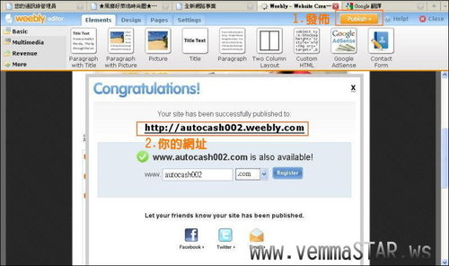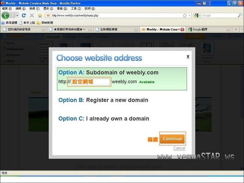 4-1.輸入你想要的網 域 (須 唯一無二) 如:http:// 隨意取的名字 .weebly.com