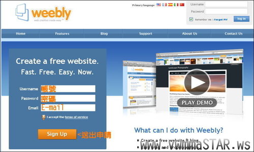 1-1.進 入weebly,網址: http://www.weebly.com/
