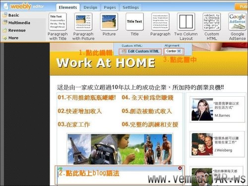 使用Weebly制作的原因是由於Weebly可相容的語法最完整 功能也最強 而且系統不亂並且操縱方便 復制也方便 更主要的一點原因是"免費"