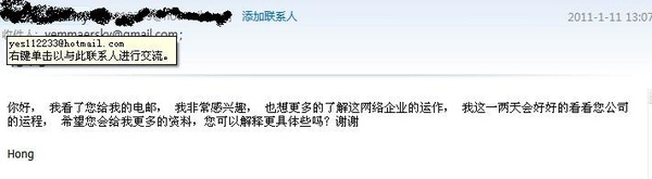 今天終於有個准會員發郵件聯繫我了