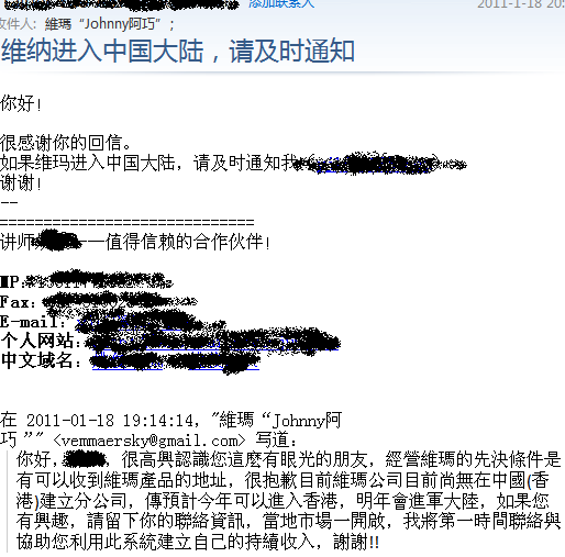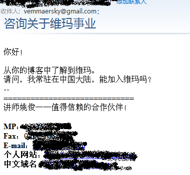 有一位大陸的朋友來信向我諮詢維瑪的相關事宜。