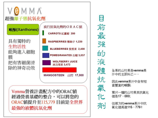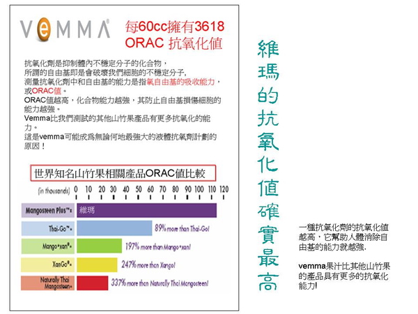 8)Vemma 的抗氧化值最高!!每60ml擁有3618 ORAC